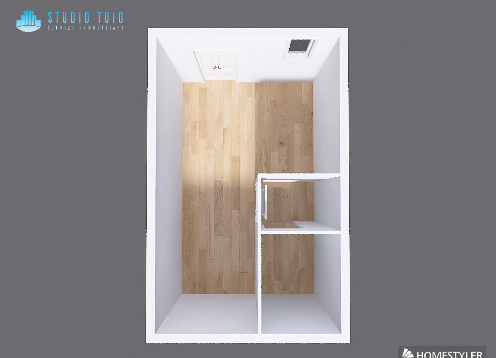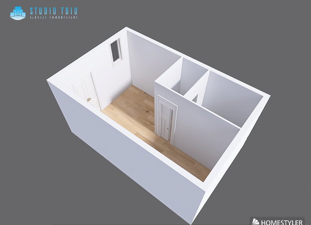 La soluzione è composta da ingresso direttamente sulla zona living, cucina a vista e bagno completo di box doccia.
