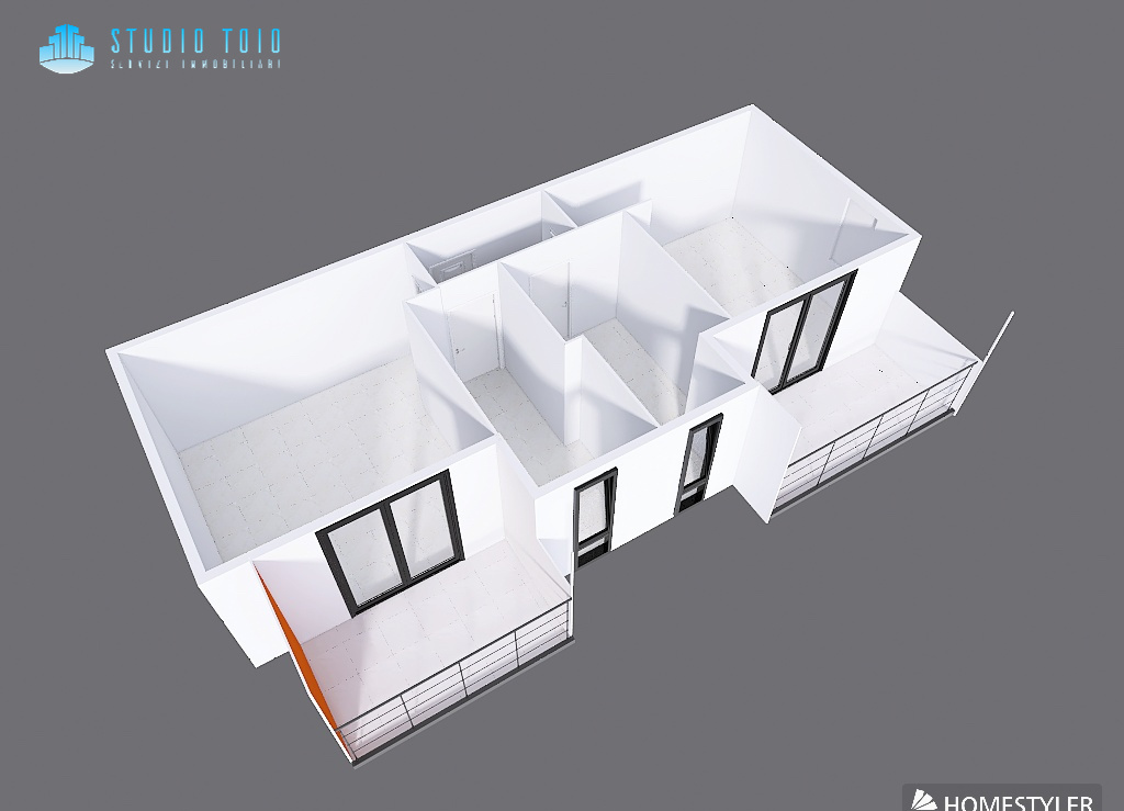La soluzione si presenta completamente ristrutturata ed è composta da ingresso su disimpegno che ci conduce alla zona living, luminosa e moderna, completa di cucina a vista e accesso al primo terrazzo.
